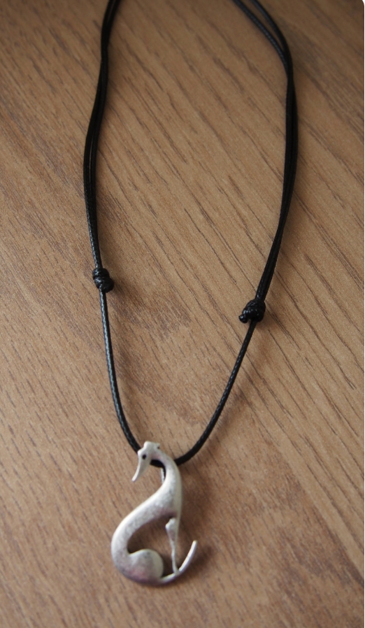 A delightful sitting Italian Greyhound looking back pendant in silvered alloy on an adjustable cord.